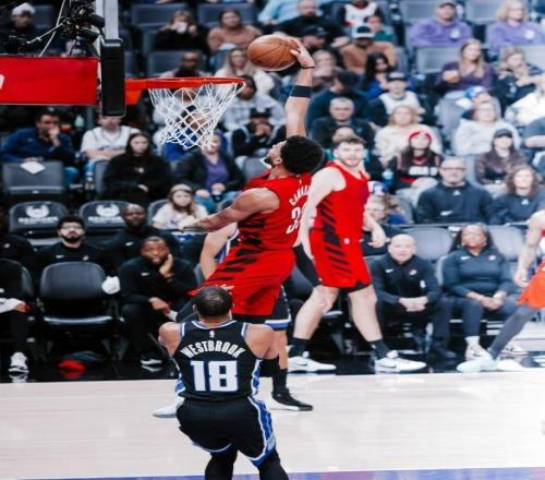 开拓者(22-22):阿夫迪亚30分8篮板8助攻,夏普27分6篮板,克林根21分17篮板,卡马拉17分,杨瀚森2分1助攻1抢断。