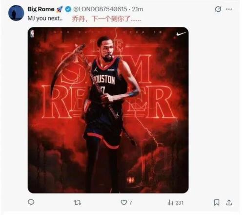 “我并不是非常开心,他超越了我哈哈,开玩笑的。对我来说,他是我所见过的最纯粹、最丝滑的得分手之一。恭喜你杜兰特,继续前进吧,再上升几位。祝你好运。”