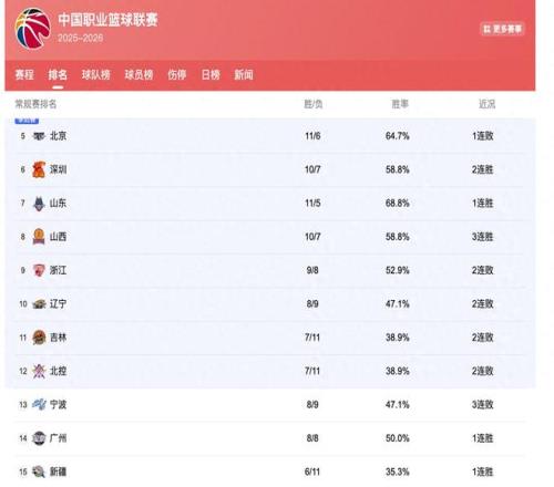 对比这一些成绩还不错的球队,浙江、辽宁以及吉林这三支球队则是在最近的一系列比赛中遭遇连败。其中浙江队作为昔日有实力争冠的球队,在进入新的赛季之后,随着主力出走,主教练更换,整个球队出现大幅度的成绩下滑,目前遭遇两连败仅仅排在第九名。
