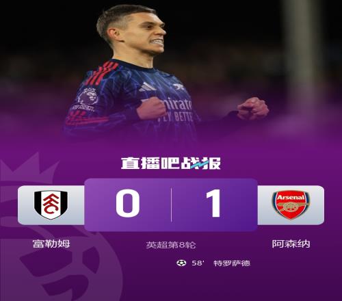 英超联赛第8轮,阿森纳1-0小胜富勒姆,特罗萨德制胜。