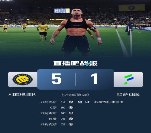 5轮全胜!胜利5-1哈萨征服 C罗传射+失点后轰世界波菲利克斯戴帽